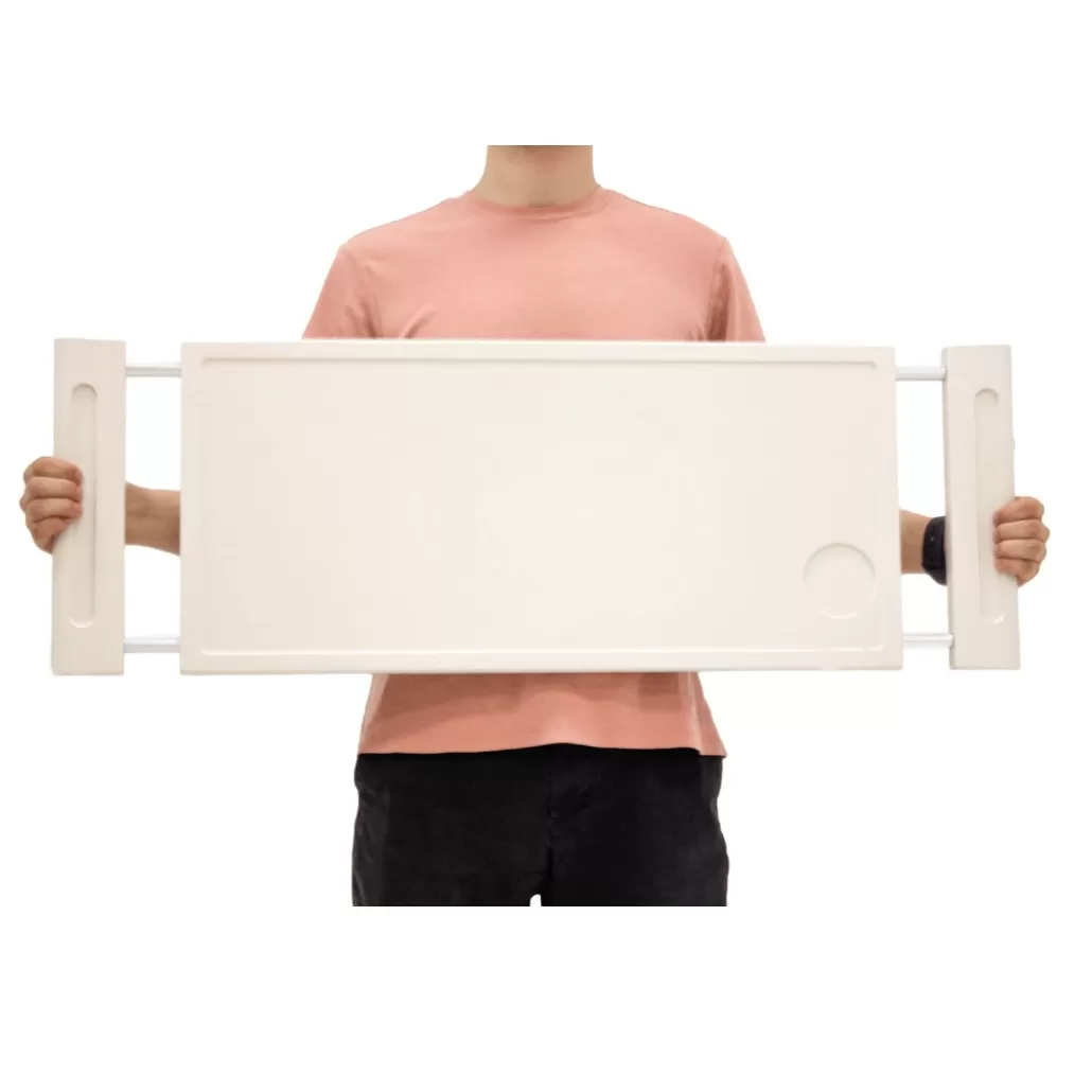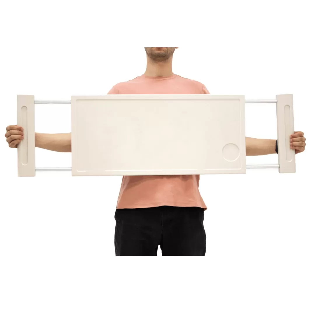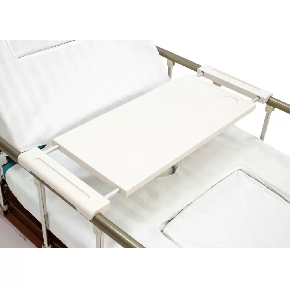 Надкроватный столик из пластика, устанавливаемый на боковые ограждения шириной он 80 до 105 см