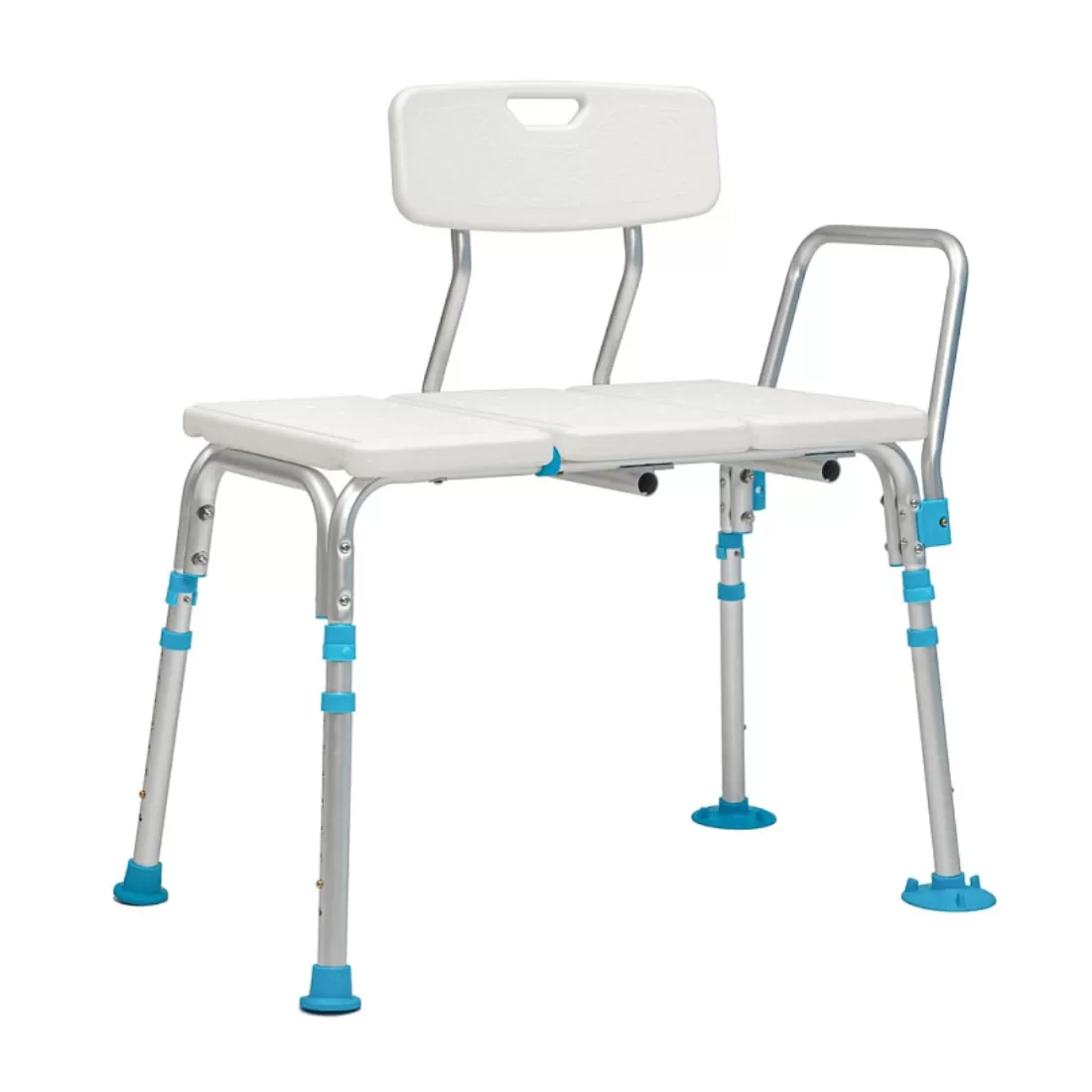 Стул оснащен быстросъемным подлокотником для дополнительной опоры, а также переставной спинкой, которую возможно установить в зависимости от расположения ванны или душевой кабины.