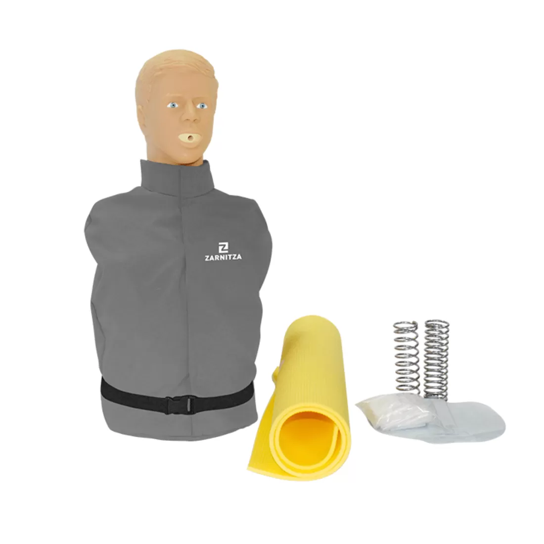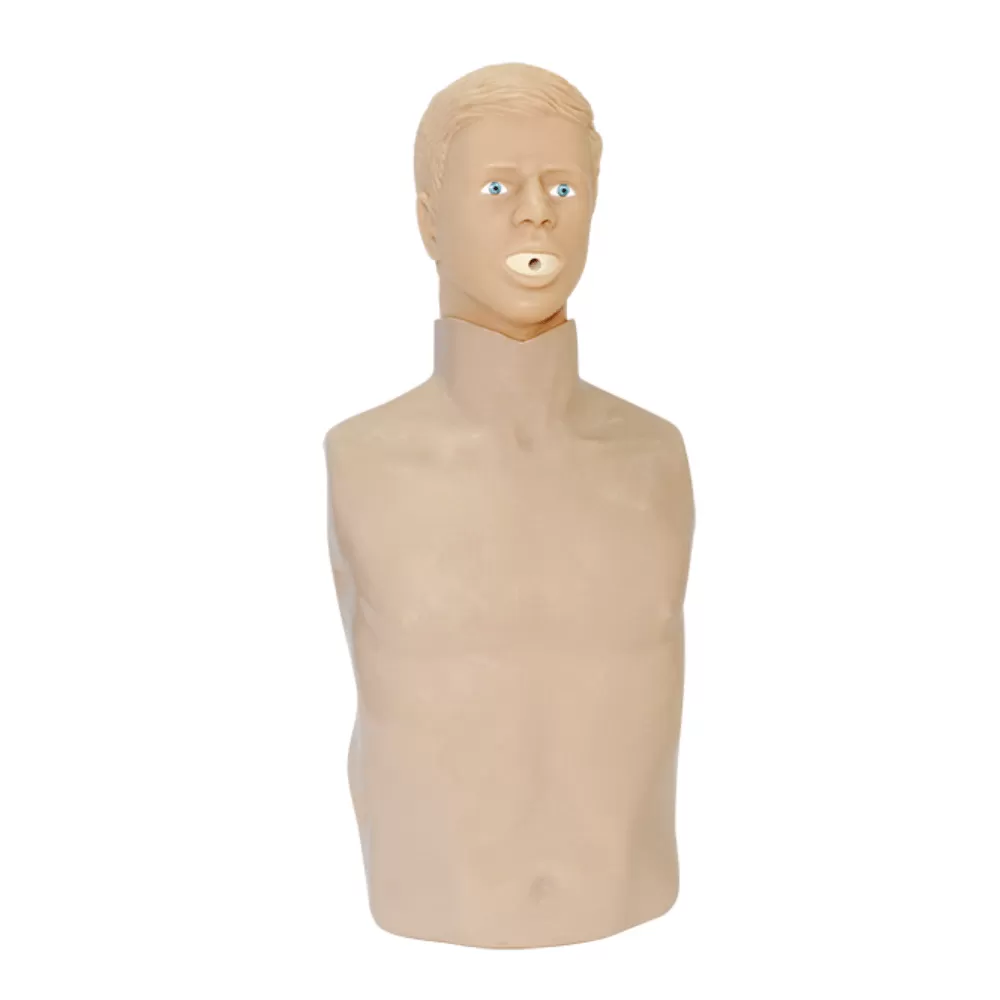 Тренажер-манекен представляет собой учебно-методическое оборудование, имитирующее торс взрослого пострадавшего, предназначенное для отработки навыков проведения сердечно-легочной реанимации.Тренажер-манекен имеет подвижное соединение тела с головой, имитирующее шейный отдел позвоночника. В конструкции торса манекена предусмотрены детали и узлы в виде анатомических ориентиров (грудная клетка, мечевидный отросток грудины, соски, ключица) для корректного проведения реанимационных мероприятий.