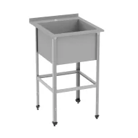 Ванна моечная односекционная с бортом ВМ-АБВ-О 530х585х870. Оборудована одной ёмкостью, подходит для мытья небольшого количества посуды на предприятиях общепита, или торговли. Может использоваться для оттаивания или обработки продуктов питания.