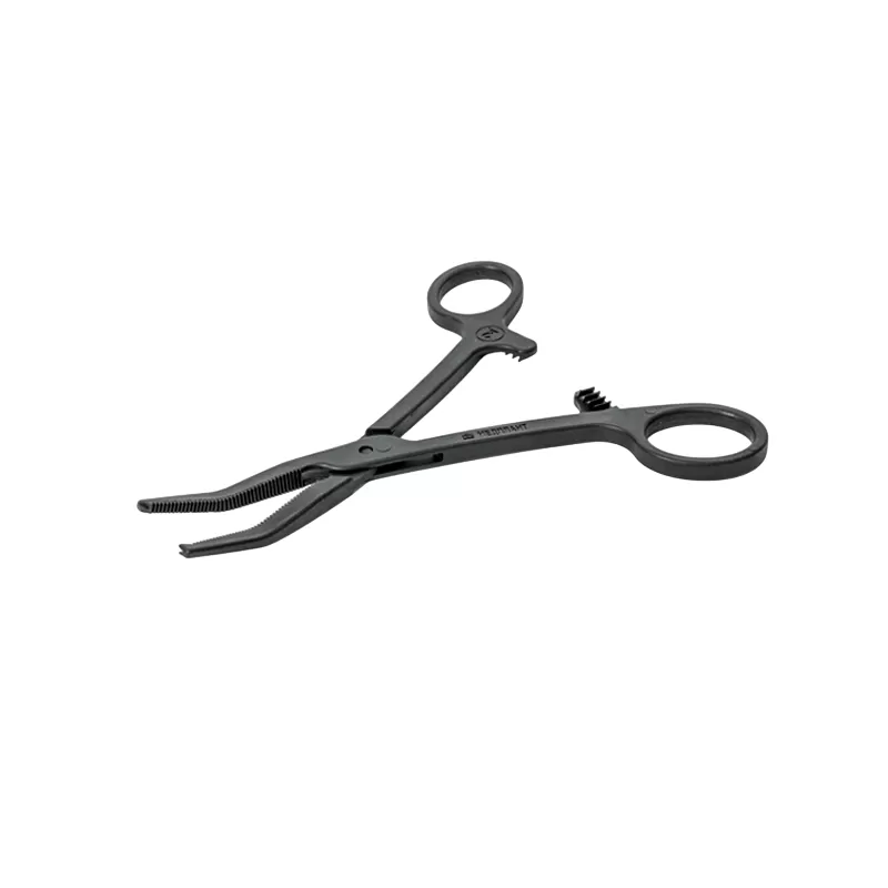 Зажим Кохера изогнутый одноразовый стерильный, хирургический инструмент, предназначенный для захватывания и пережатия кровеносных сосудов и кровоточащих участков при хирургических операциях.