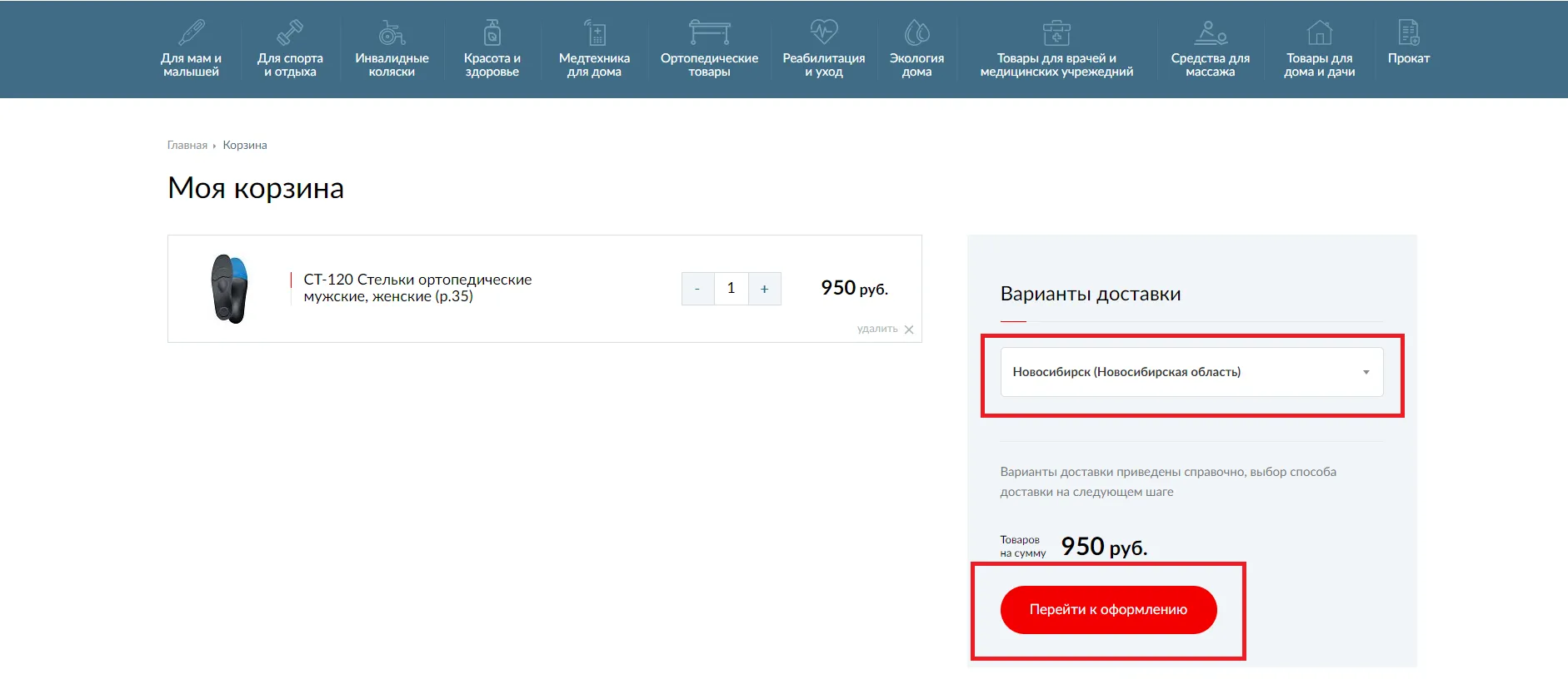 Шаг 3. Перейдите в корзину и при необходимости скорректируйте заказ. Выберите город и затем нажмите кнопку "Перейти к оформлению".