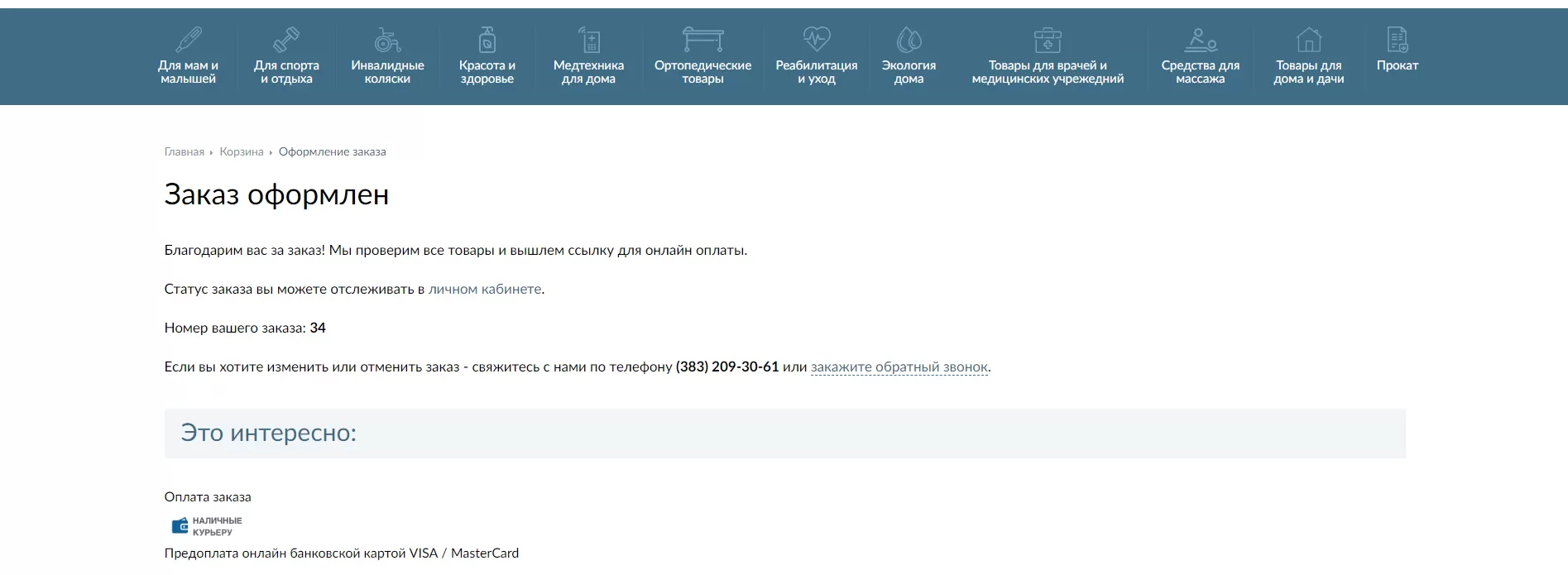 Шаг 5. В конце оформления заказа Вы увидите сообщение с номером заказа. Ваш заказ будет обработан и менеджер свяжется с Вами в ближайшее время.